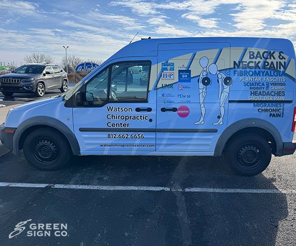 Green Sign Company recently partnered with Watson Chiropractic to help elevate their brand visibility with a custom full van wrap. As a growing local business, Watson Chiropractic wanted a professional, eye-catching design that would help them stand out in the community and showcase their services while on the road. Our team designed, created, and installed a GSC 100 Series full vehicle wrap, transforming their commercial van into a vibrant, mobile advertising tool. The custom graphics were tailored to reflect their branding, ensuring a clean, modern look that communicates professionalism and builds brand recognition. Vehicle wraps are one of the most cost-effective and impactful forms of marketing for businesses of all sizes. With a properly designed wrap, companies can take advantage of continuous exposure — wherever the vehicle travels. This project highlights our commitment to providing high-quality signage solutions, including vehicle graphics, fleet wraps, and branded commercial signage, that help our customers grow their presence both locally and regionally. If your business is interested in a custom vehicle wrap, fleet branding, or other graphic signage solutions, our team is here to help from design through installation. Contact us today to get started!