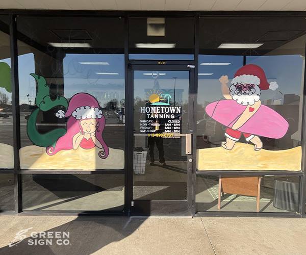 Another project in the books for Hometown Tanning in Greensburg, IN ✨ In addition to their new channel letters, the team needed clear and professional door graphics to display their business hours. Our team designed, created, and installed GSC 100 Series door graphics to tie everything together and help customers know exactly when to stop in. Clean, functional, and on-brand—just the way signage should be. 💚